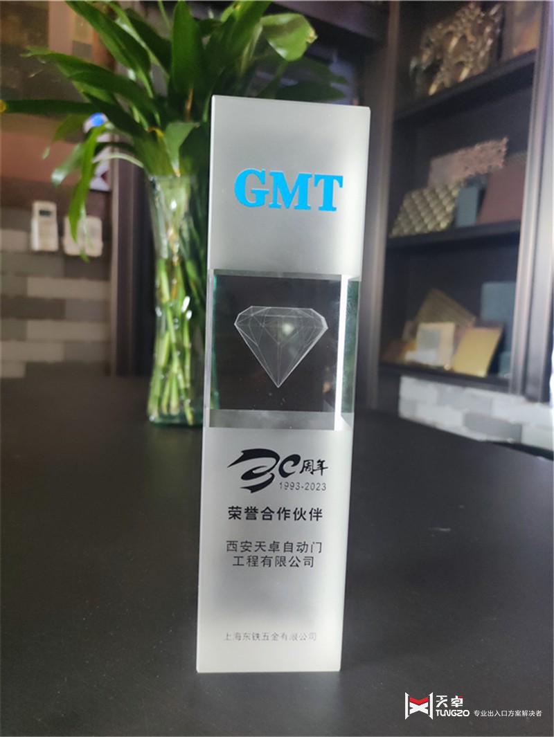 于2023年7月17日,西安天卓自動門的董事長卓天倫受邀參加了上海東鐵GMT30周年優秀合作伙伴大會。西安天卓自動門是上海東鐵GMT的一級代理商,負責銷售GMT地彈簧、GMT閉門器、GMT自動門、GMT旋轉門以及其他小五金配件,例如合頁鉸鏈、拉手、貓眼和門檔。此次大會在陜西西安舉行,標志著GMT對西北市場的高度重視。西安天卓自動門在此次大會上榮獲GMT30周年榮譽合作伙伴獎項,同時還有陜西儒藝工貿有限公司、成都XX等幾家公司獲得了次獎勵。除了頒獎典禮,GMT還推出了新款的地彈簧、閉門器和智能鎖。