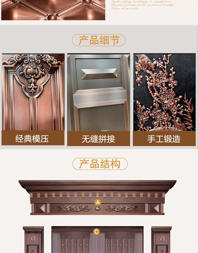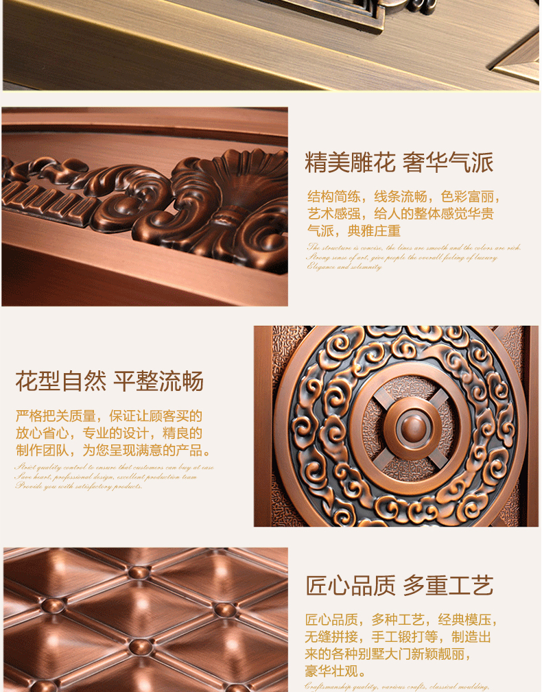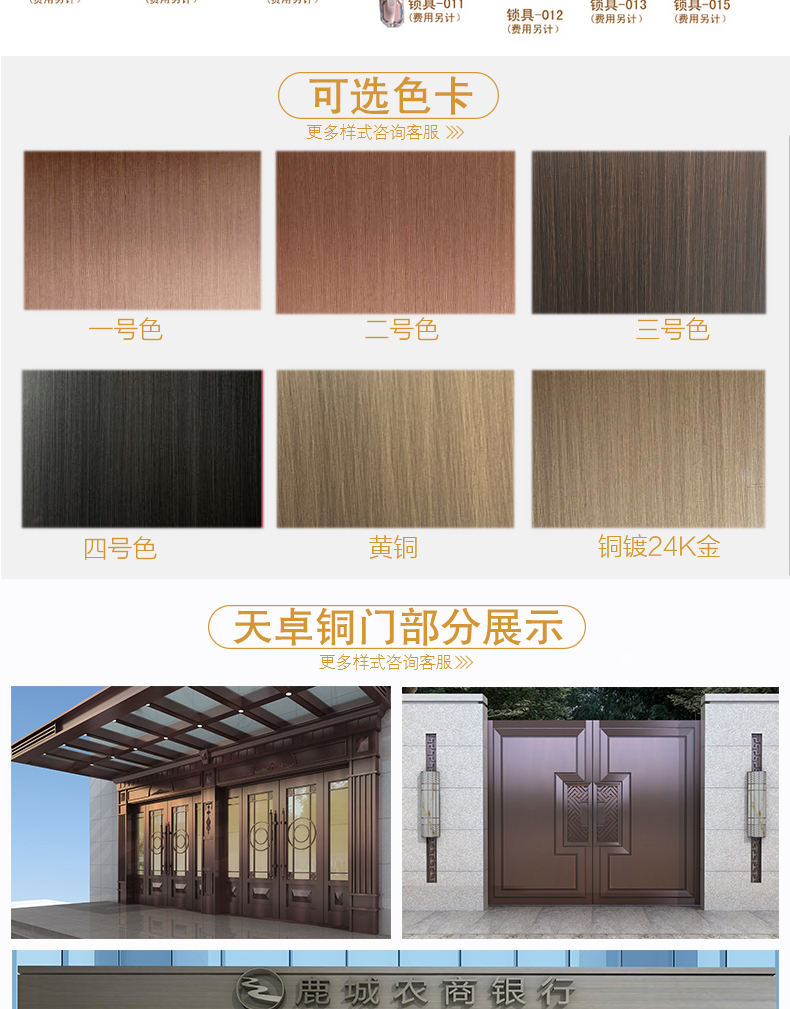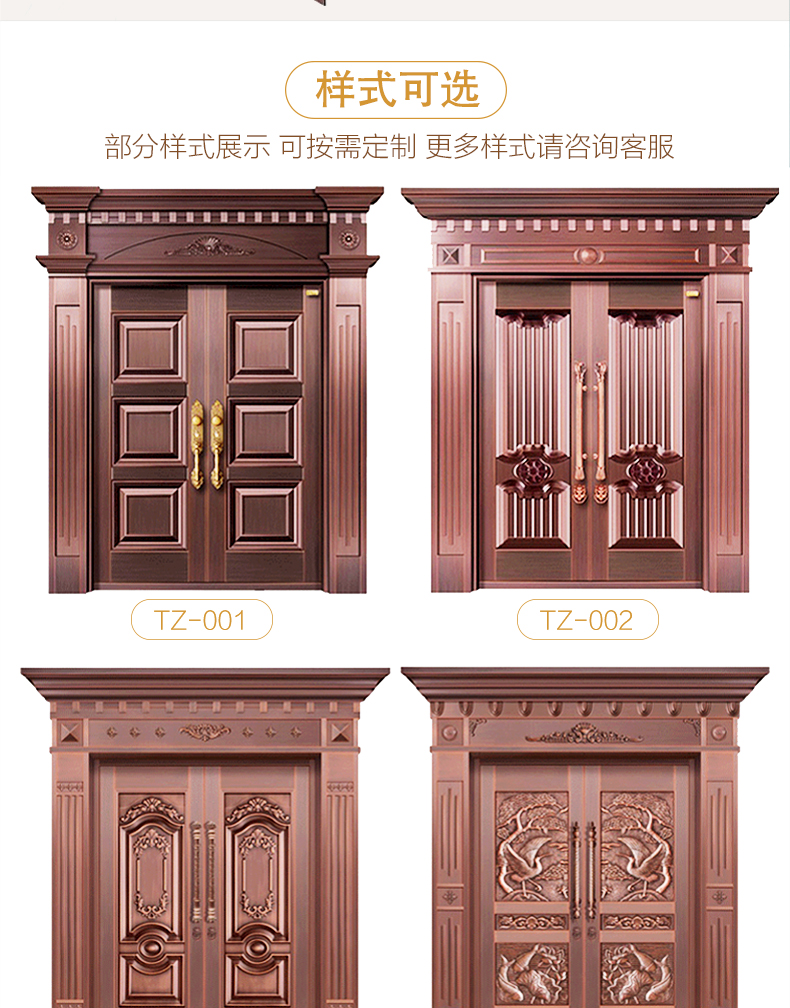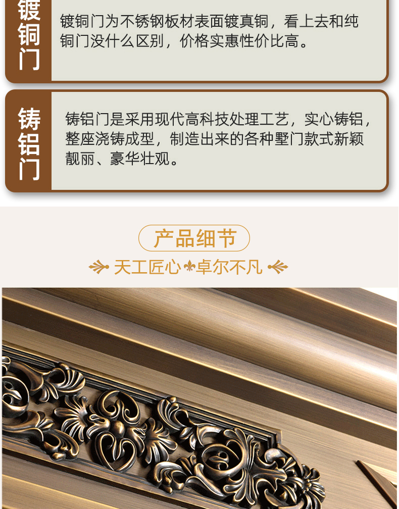 一、你這門是真銅門,鍍銅門,還是仿銅門,我只要真銅,不要用假的騙我,假一賠十寫進合同里。二、門扇和門套里填充是什么,我只要鋁蜂窩或者聚氨酯發泡,不要給我用什么紙蜂窩,用不了多久就會爛掉。三、荷葉用的是...