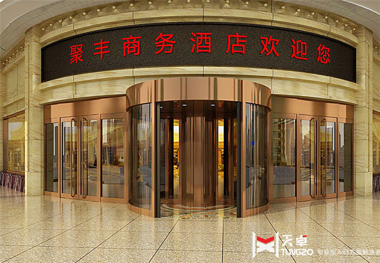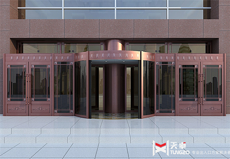 西安天卓牌環(huán)柱式三翼,四翼旋轉(zhuǎn)門,很好的解決了建筑物入口中心有承重結(jié)構(gòu)柱無法安裝旋轉(zhuǎn)門的難題。它將承重結(jié)構(gòu)柱包飾起來作為旋轉(zhuǎn)門的中心柱,門扉及展箱繞柱旋轉(zhuǎn),體現(xiàn)出豪華氣派的美感。環(huán)柱旋轉(zhuǎn)門外觀補素大方,運行安全穩(wěn)定。能有效的隔斷內(nèi)外氣流、防風(fēng)、防塵、靜音、保持內(nèi)部溫度。